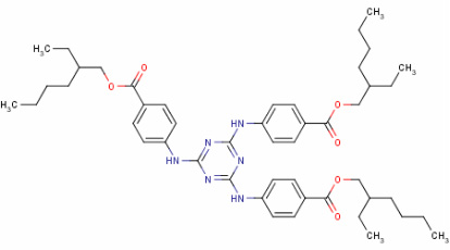 | Synonyms: | 4,4',4''-(1,3,5-Triazine-2,4,6-triyltriimino)trisbenzoic acid tris(2-ethylhexyl) ester; UVT-150;2,4,6-Trianilino-P-(Carbo-2'-Ethyl-hexyl-1'-Oxi)-1,3,5-Triazine;;Octyl Triazone |